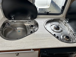 - nerezový dřez se skleněným krytem a třetím hořákem vařiče