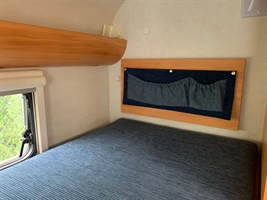 Rozkládací boční sezení, velká francouzská postel, palandy, kuchyň, WC se sprchou, toaletní koutek, boční garáž