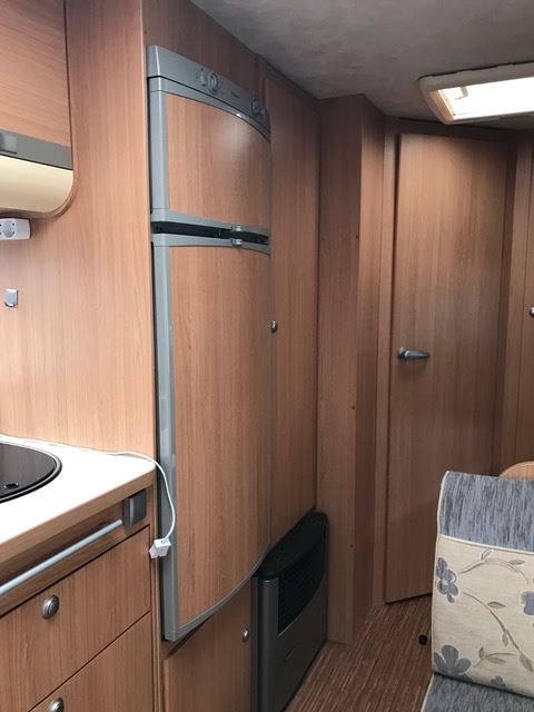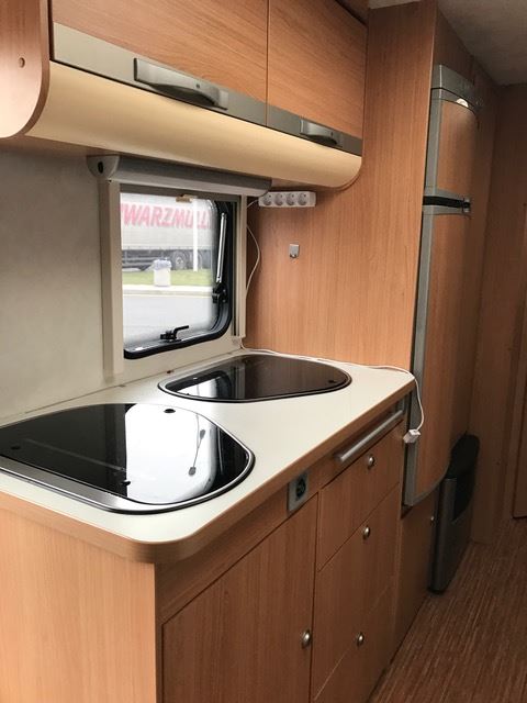 Velké rozkládací sezení do ,,U", francouzská postel, palanda pro 3 děti, kuchyň, WC s umyvadlem, samostatný sprchový kout