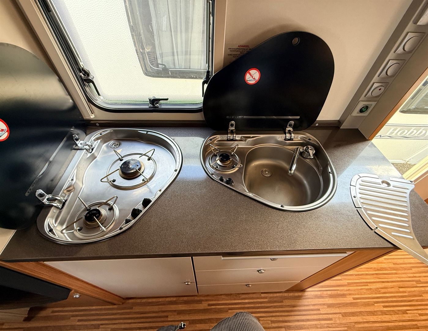 - nerezový dřez se skleněným krytem