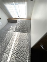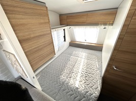 Boční rozkládací sezení, francouzská postel, kuchyň, WC se sprchou a výklopným umyvadlem.