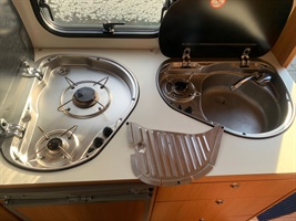- nerezový dřez s jedním plynovým hořákem a skleněným krytem