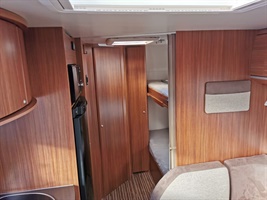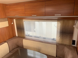 Rozkládací sezení ve tvaru U, francouzská postel, palandy, kuchyň, WC, sprchový kout, umyvadlo