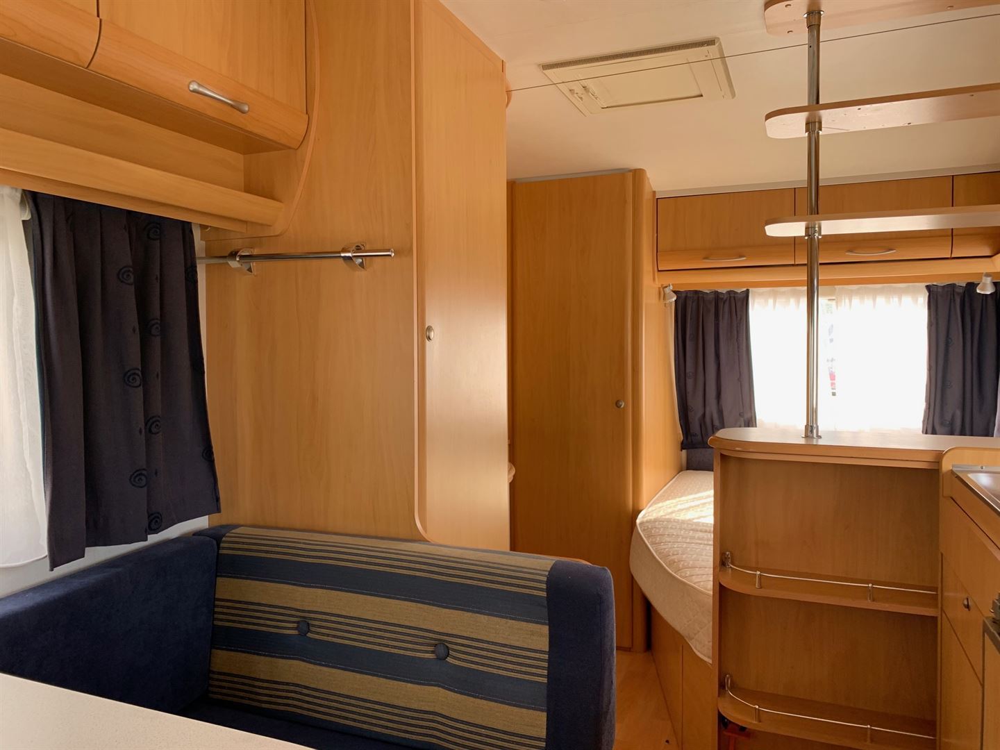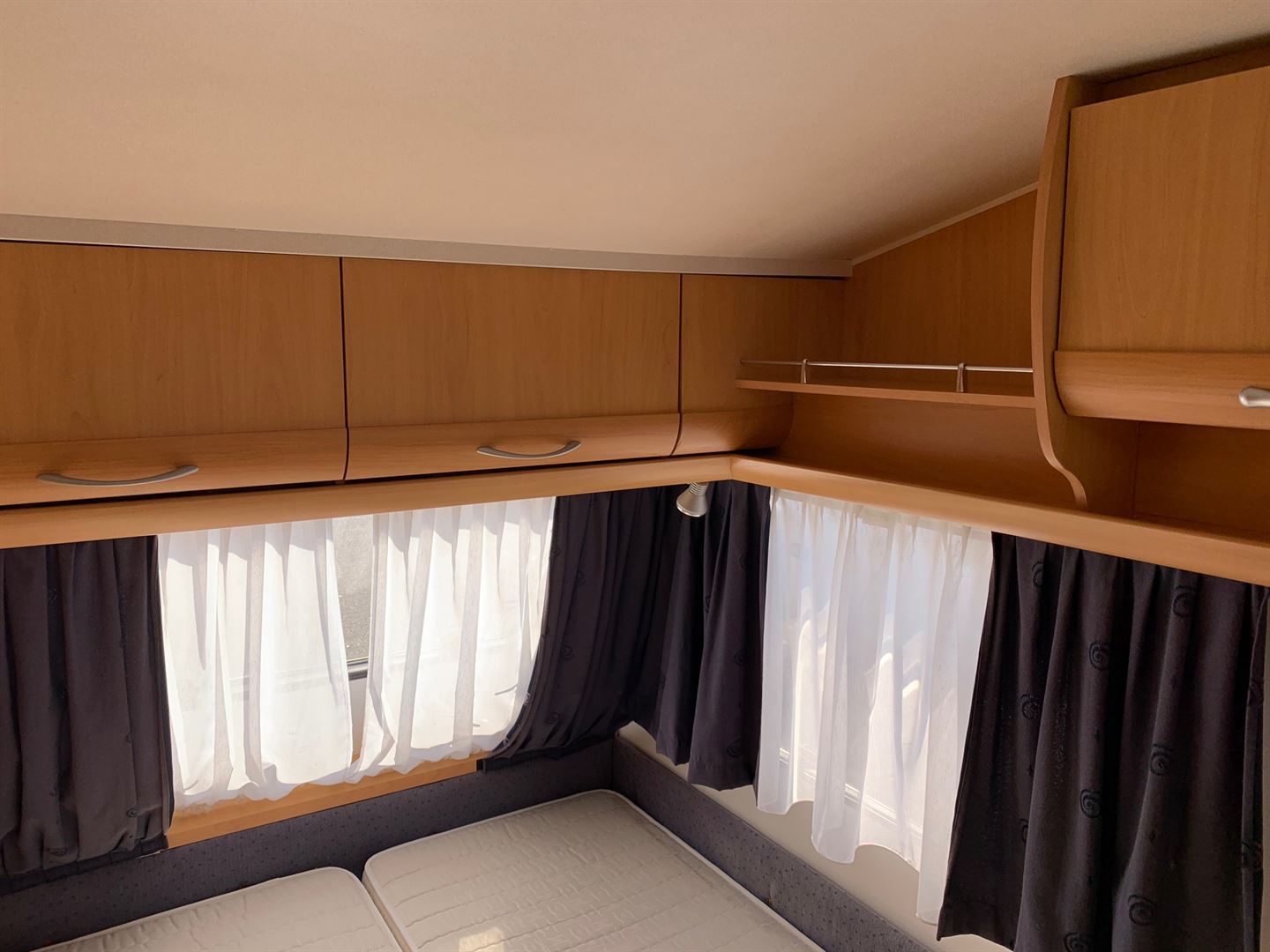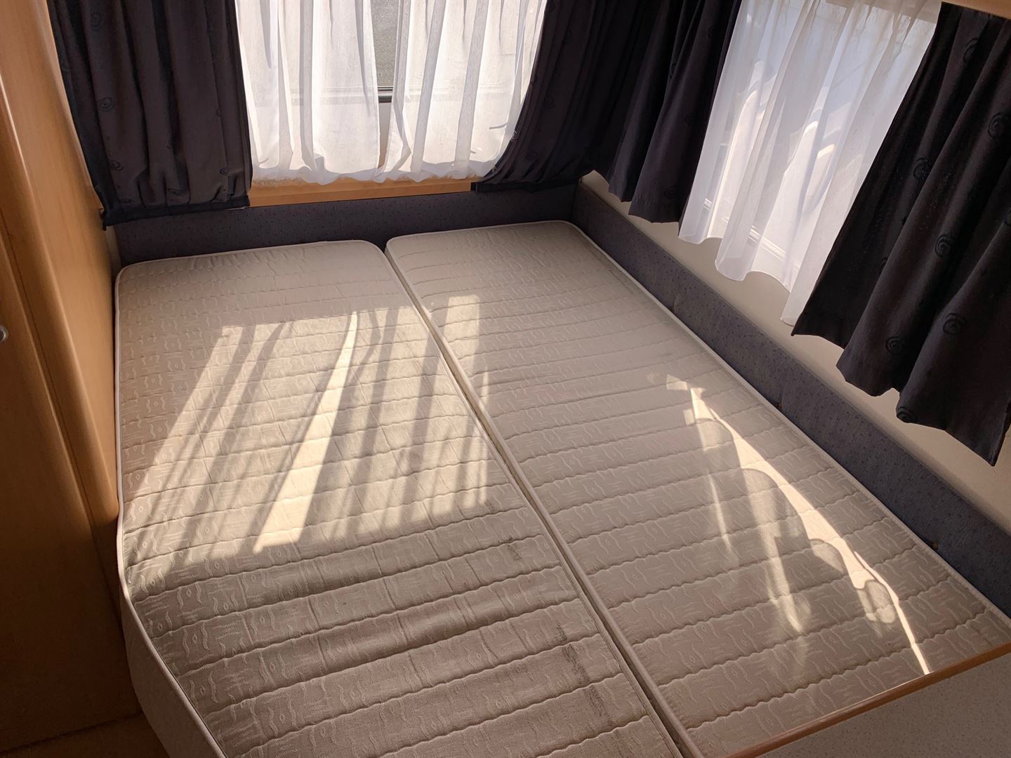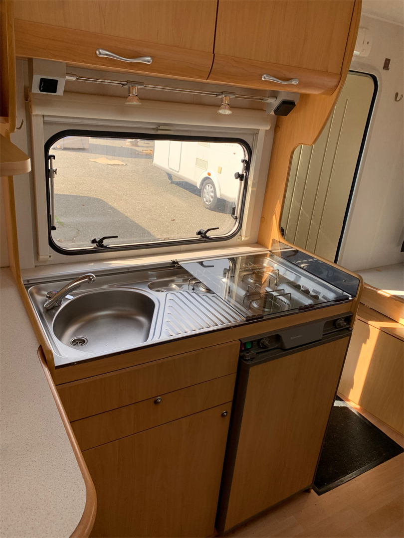 Boční rozkládací sezení, francouzská postel, kuchyň, WC, toaletní koutek