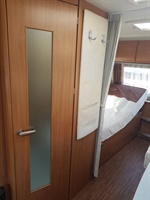 Rozkládací sezení ve tvaru U (240 x 147 cm), dvě oddělené postele 200 x 88 cm (možnost dokoupení roštu pro vytvoření velkého letiště), kuchyň, WC s umyvadlem