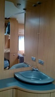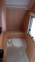 Rozkládací boční sezení, velká francouzská postel, palandy, kuchyň, WC se sprchou, umyvadlo zvlášť.
