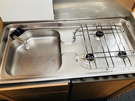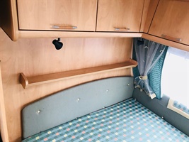 Rozkládací boční sezení, velká francouzská postel, palanda, kuchyň, WC s umyvadlem