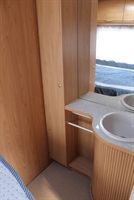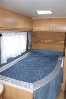Rozkládací boční sezení, velká francouzská postel, palandy, kuchyň, WC se sprchou, umyvadlo zvlášť.