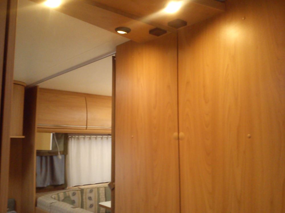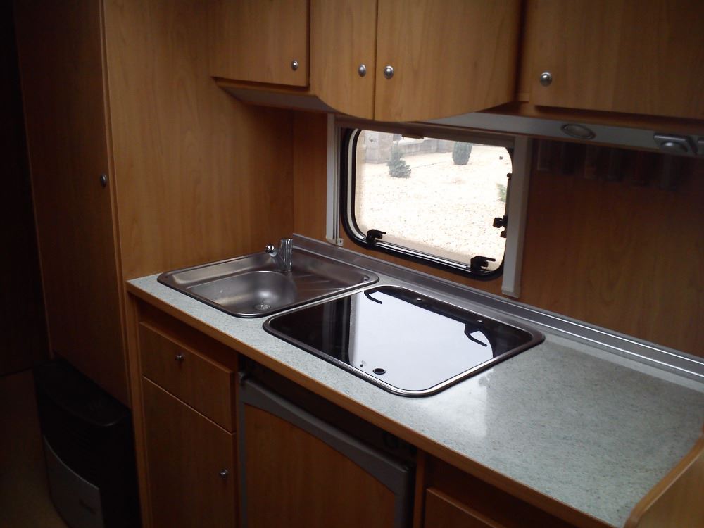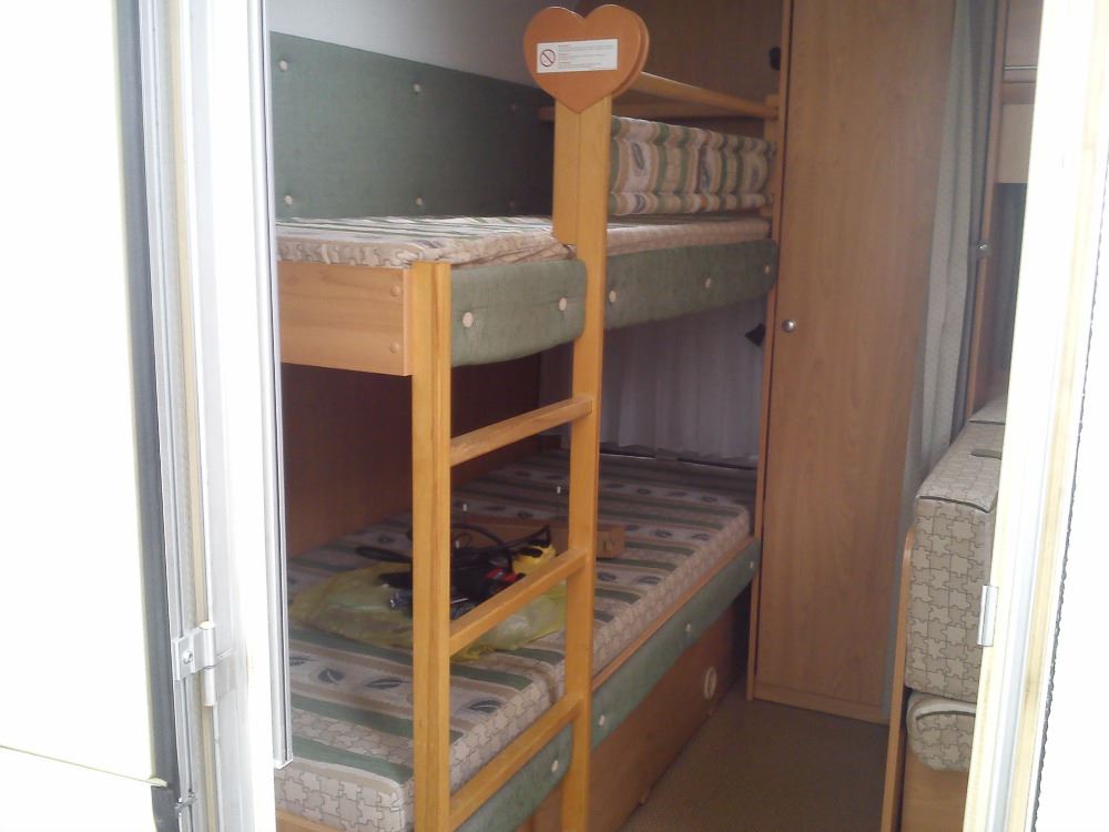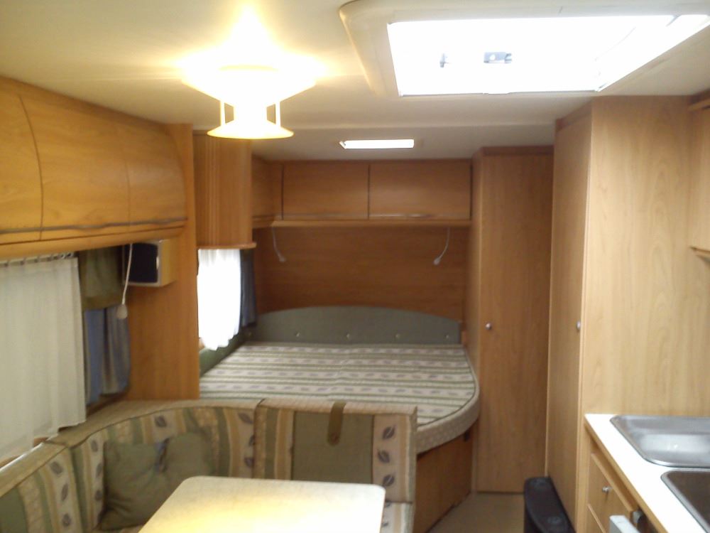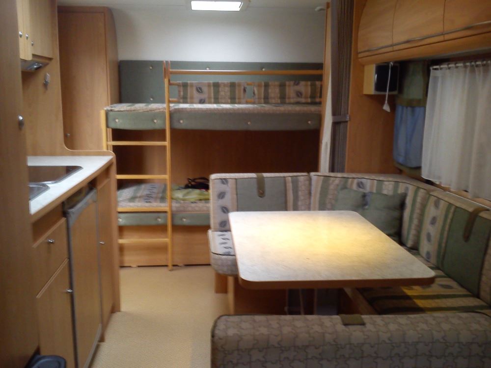 Rozkládací sezení do ,,U", velká francouzská postel, palanda, kuchyň, WC se sprchou, umyvadlo zvlášť.