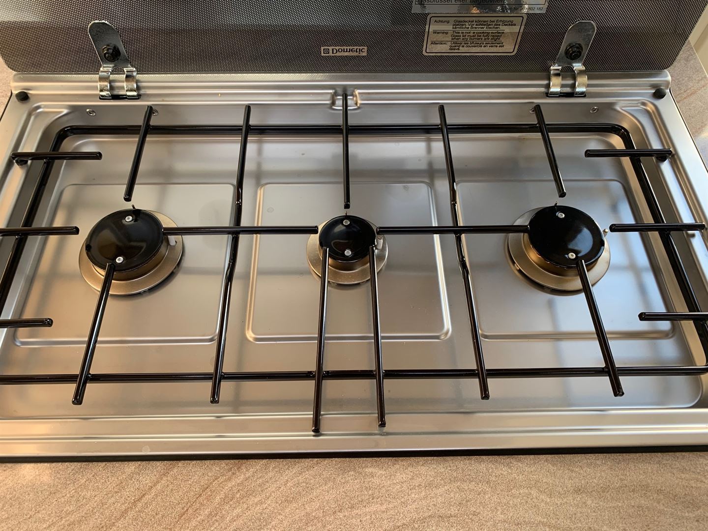 - tříhořákový nerezový plynový vařič se skleněným krytem