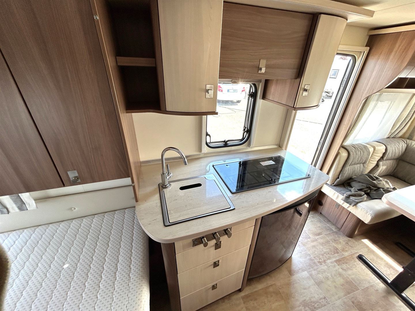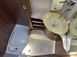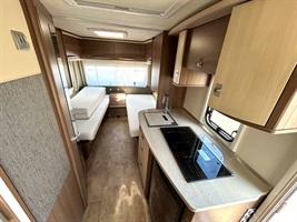 Rozkládací sezení do ,,U" s rozšířením stolu na veliký( viz foto) , dvě samostatné postele s vytahovacím roštem mezi , , kuchyň, WC s umyvadlem a sprchovou vaničkou