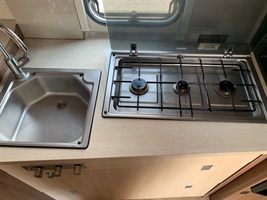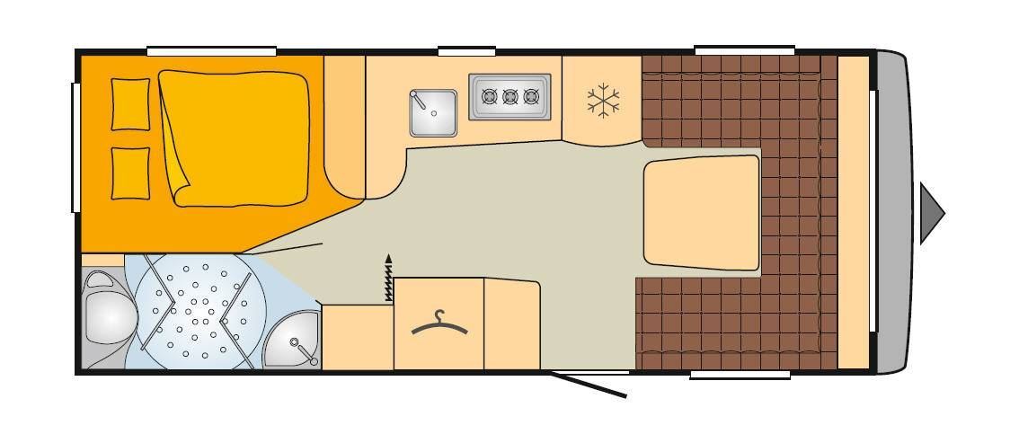 Velké rozkládací sezení do ,,U", francouzská postel, kuchyň, WC, plnohodnotná sprcha, umyvadlo