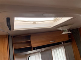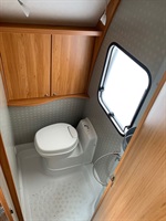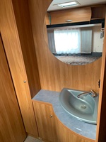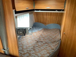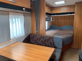 Rozkládací boční sezení, velká francouzská postel, palandy přes celou šíři karavanu i pro dospělé, kuchyň, WC se sprchou, umyvadlo zvlášť.