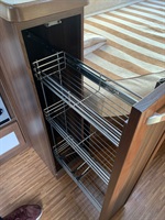 Velké rozkládací sezení ve tvaru U, francouzská postel, kuchyň, WC, toaletní koutek