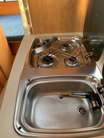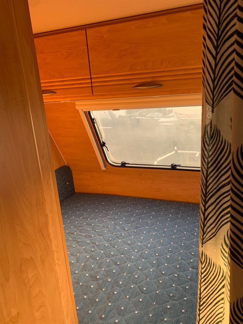 Boční sezení, francouzská postel, velká palanda se žebříkem, kuchyň, WC se sklopným umyvadlem a sprchovou vaničkou