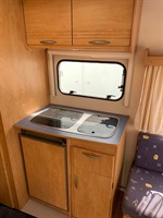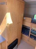 Rozkládací boční sezení 195 X 165 X 130, palandy 193 x 75, kuchyň, WC s umyvadlem a sprchou