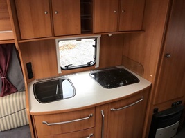 Velké rozkládací sezení do ,,U", dvě oddělené postele (možno objednat rozšíření na velké letiště pro 3osoby), kuchyň, koupelna s WC a umyvadlem se sprchovou baterií.