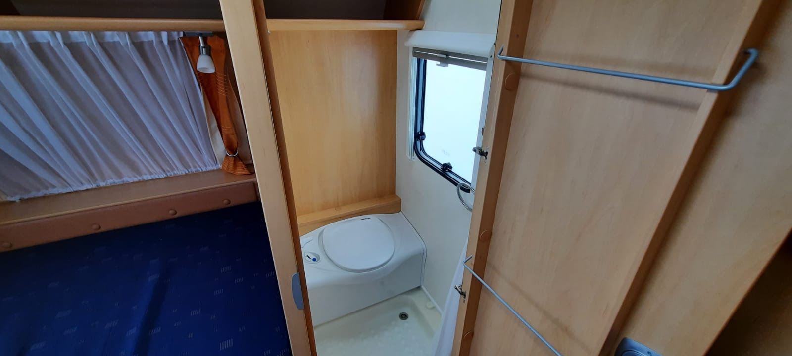 Boční rozkládací sezení, velká francouzská postel, palandy, kuchyň, WC, toaletní koutek