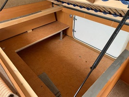 Velké rozkládací sezení ve tvaru U, francouzská postel, kuchyň, WC s umyvadlem a sprchou