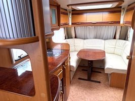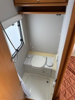 Velké KOŽENÉ rozkládací sezení ve tvaru U, francouzská postel, kuchyň, WC se sprchou, toaletní koutek s umyvadlem