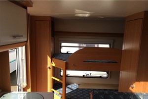 Velice prostorný karavan, palandy vhodné i pro dospělého.