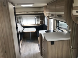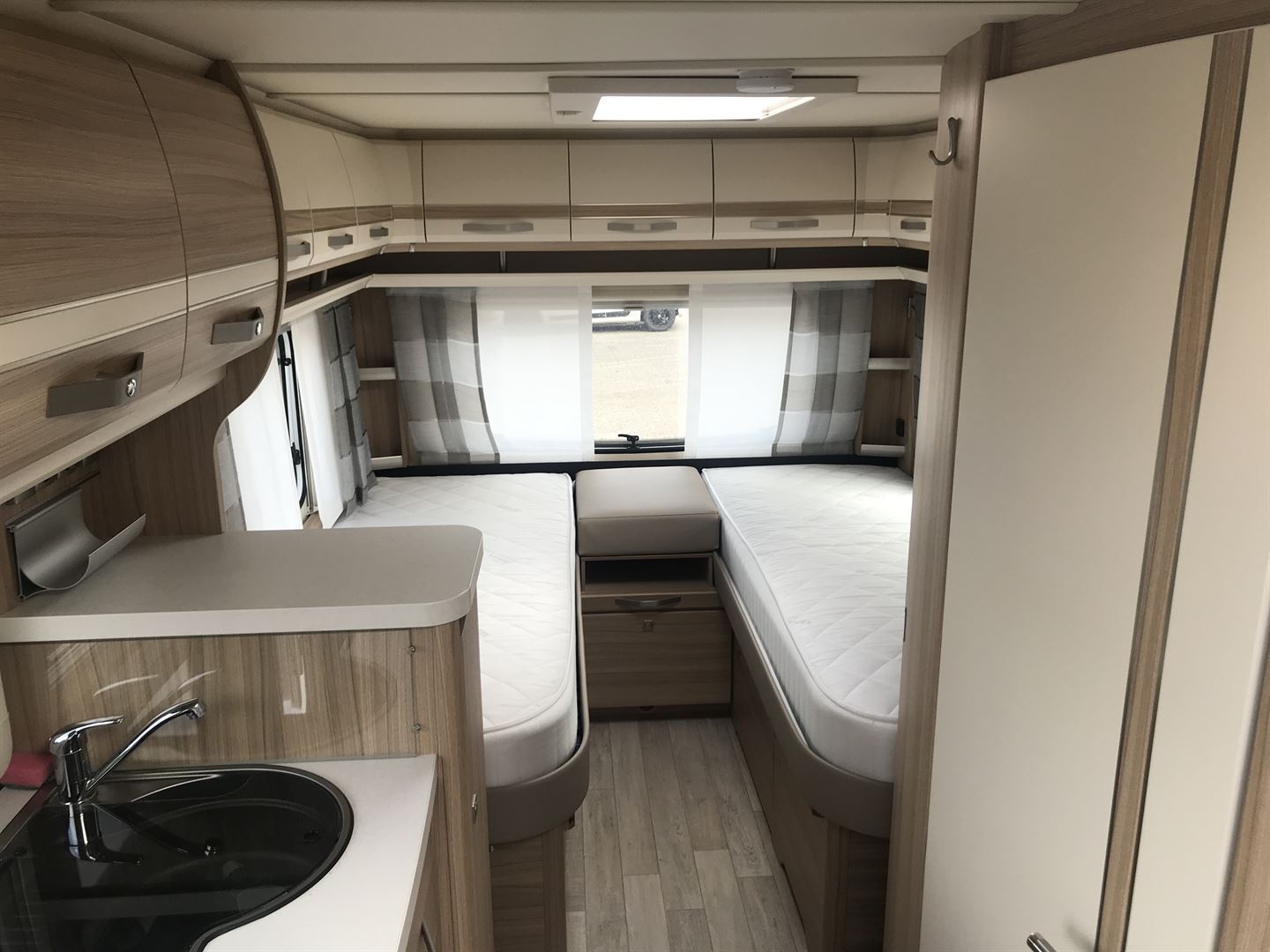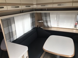 Rozkládací sezení ( 121/142 x 210 cm), dvě oddělené postele ( 80 x 200 + 80 x 205 cm) + vysouvací rošt pro vytvoření velkého letiště, kuchyň, WC s umyvadlem