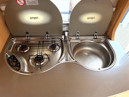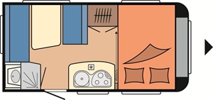 Rozkládací boční sezení, francouzská postel, kuchyň, WC s umyvadlem