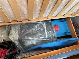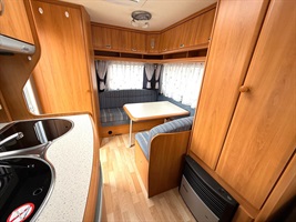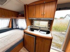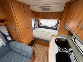 Rozkládací boční sezení, francouzská postel, kuchyň, WC s umyvadlem
