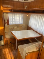 Boční rozkládací sezení, francouzská postel, kuchyň, WC s umyvadlem a sprchovou vaničkou