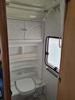 Rozkládací boční sezení, francouzská postel, kuchyň, WC se sprchou, toaletní koutek