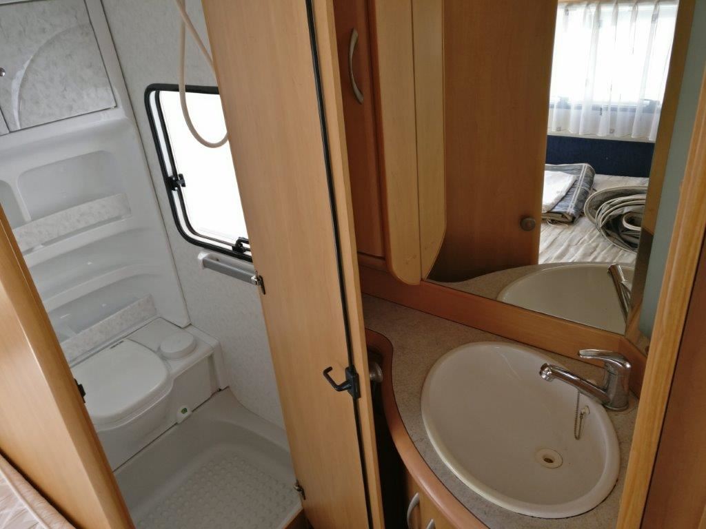 Velké rozkládací sezení do ,,U", francouzská postel, kuchyň, WC se sprchou a sprchovou vaničkou, umyvadlo zvlášť