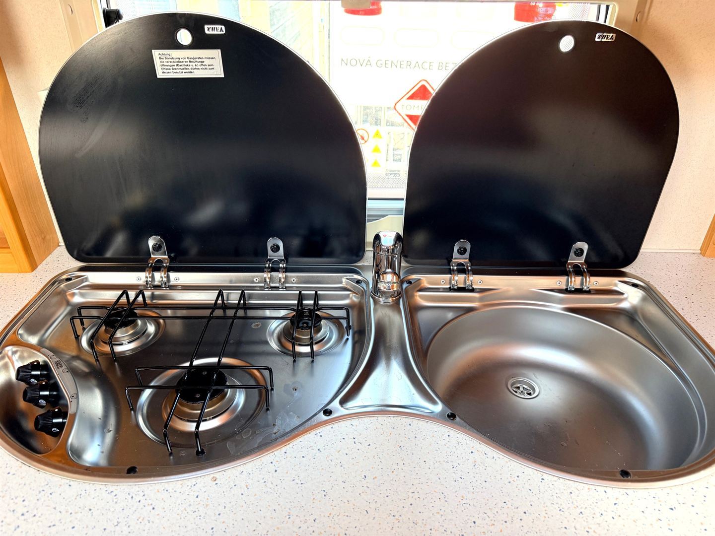 - nerezový dřez se skleněným krytem