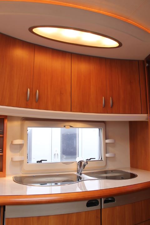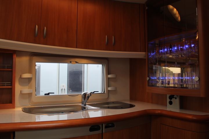 - osvětlení 12 i 220V v karavanu velmi bohaté- stmívání světel, světelný pás, hvězdná obloha, modré diodové podsvícení baru atd.