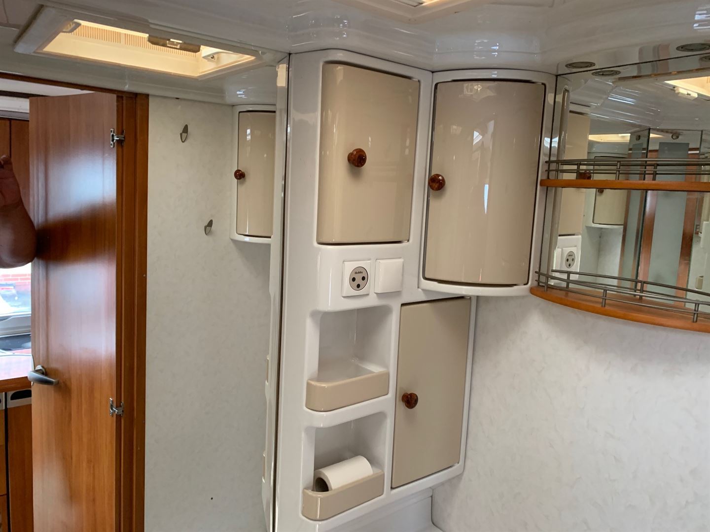Velké rozkládací sezení ve tvaru U, dvě oddělené postele - na pŕání lze dodat rošt s matrací pro vytvoření velkého letiště, kuchyňl, WC s umyvadlem