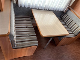Boční rozkládací sezení, francouzská postel, 3 x palanda s žebříkem, kuchyň, WC se sprchou , toaletní koutek