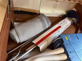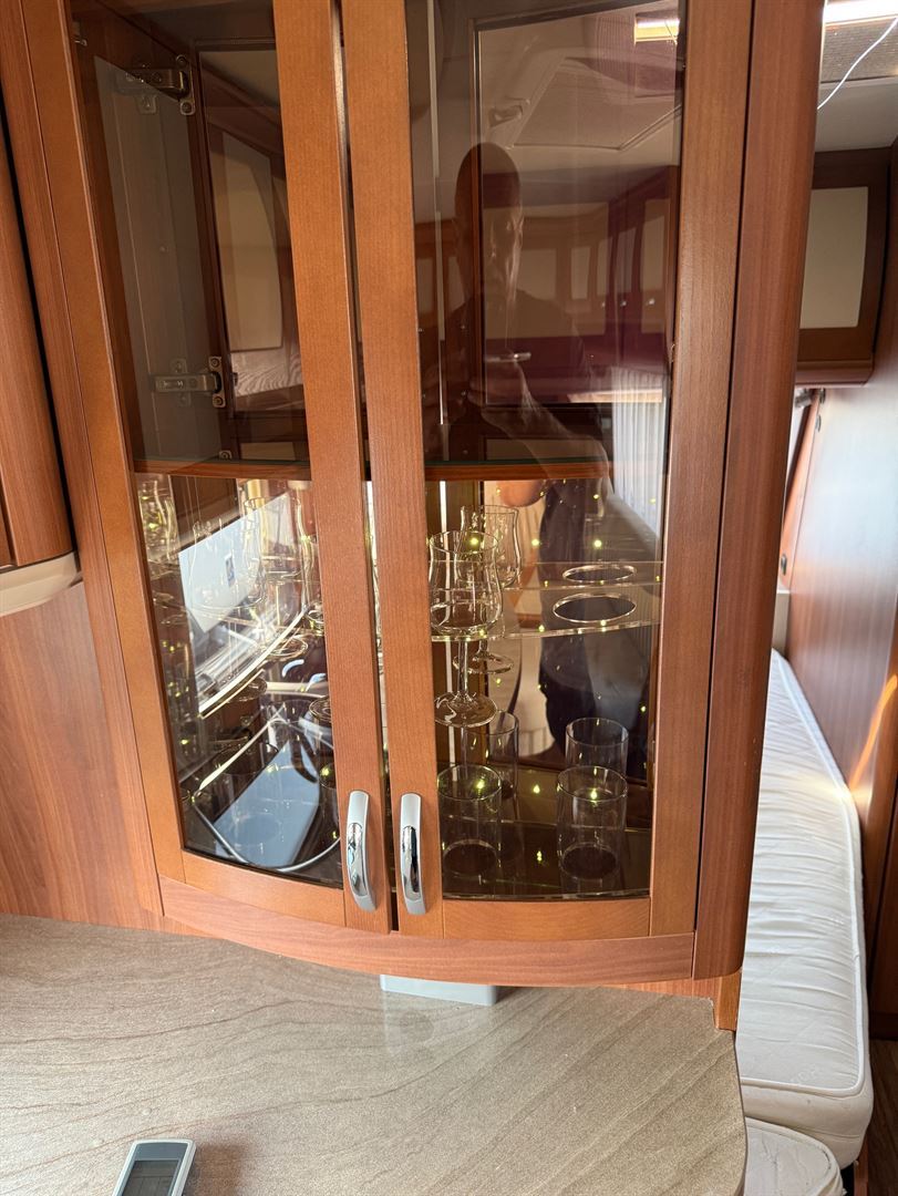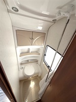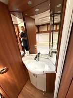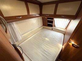 Velké rozkládací sezení ve tvaru U, velká francouzská postel, kuchyň, WC se sprchou a sprchovou vaničkou, toaletní koutek