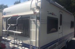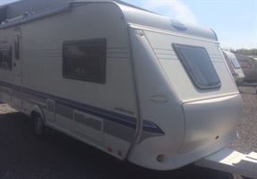 vybavení: dvě samostatné postele(lze doplnit vložkou, čímž vznikne velké letiště pro 3 osoby) rozkládací sezení do "U",kuchyň s lednicí 12/220V/plyn, nerez vařičem a dřezem,mikrovlnná trouba, el.bojler na teplou vodu, velká vestavná nádrž na vodu, topení TRUMA s rozfukem,samostatná koupelna s WC a umyvadlem, na všech oknech zatemnění a roletky proti hmyzu, velké střešní okno, 2 x menší střešní okno, servisní dvířka pro přístup pod postel zvenku, osvětlení 12/220V, střešní nosič se žebříkem, nájezdová brzda se stabilizátorem atd...