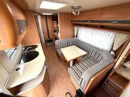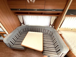 Rozkládací sezení ve tvau U, francouzská postel, palanda se 3 postelemi , kuchyň,