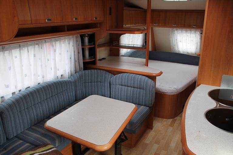 Karavan je v dobrém technickém stavu ,uvnitř drobné oděrky, opravená kuchyňská deska, jinak v dobrém stavu, čalounění čisté, nové matrace, nově namontované WC ,nový bojler, nové revize plynu a elektro