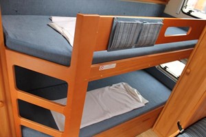 francouzská postel, palandy, rozkládací sezení do "U"-spaní až pro 6 osob, WC se sprchou, umyvadlo zvlášť, mikrovlnka, 3 x vařič a dřez nerez, nájezdová brzda se stabilizátorem, všesměrová TV anténa na střeše s rozvodem do TV skříňky,