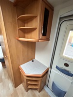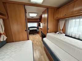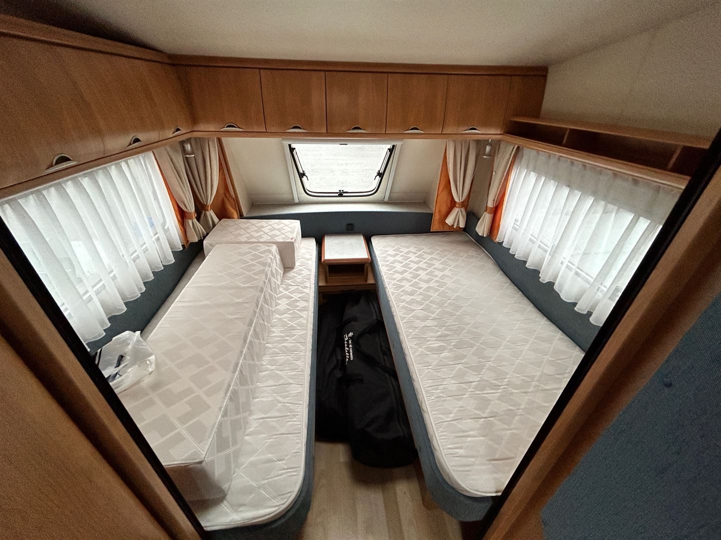 Rozkládací sezení ve tvaru U, dvě oddělené postele s roštem mezi postelemi pro vytvoření velkého letiště), kuchyň, WC s umyvadlem
