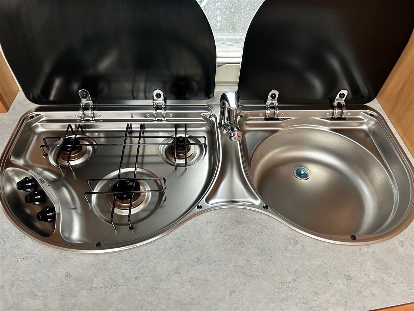 - nerezový dřez se skleněným krytem
