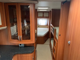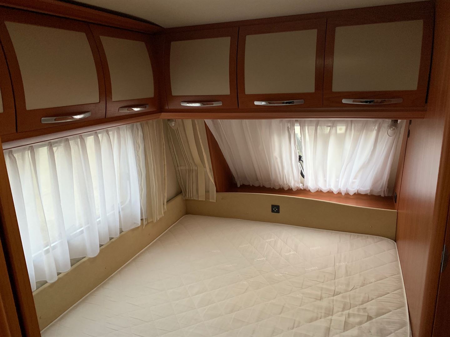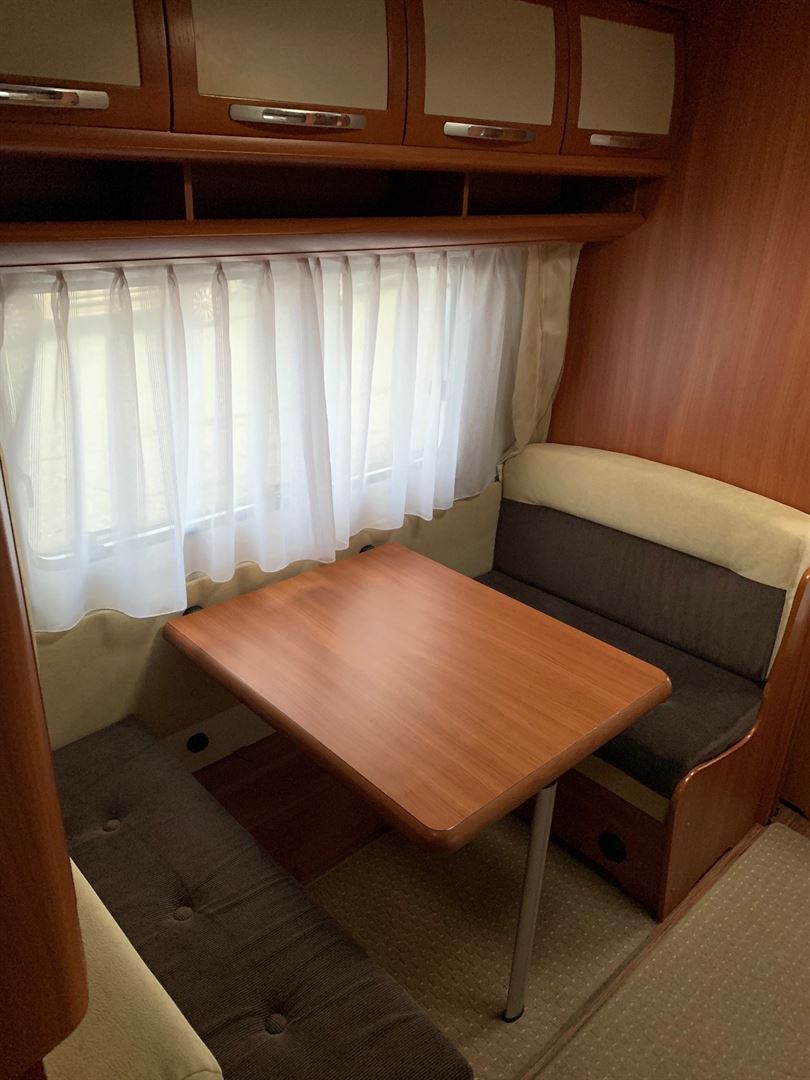 Velké rozkládací sezení ve tvaru U, ložnice s manželskou postelí, pokojíček- palanda + rozkládací boční sezení, kuchyň, WC se sprchou, toaletní koutek