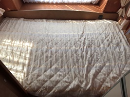 Boční rozkládací sezení, velká francouzská postel, kuchyň, WC s umyvadlem
