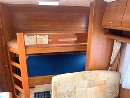 Rozkládací boční sezení, velká francouzská postel, palandy, kuchyň, WC, toaletní koutek