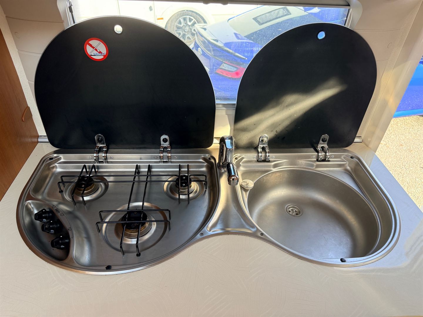 - nerezový dřez se skleněným krytem