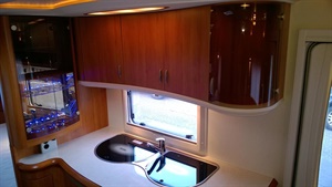 kuchyň-lednice 12/220V/plyn, plynová trouba, vařič a dřez nerez