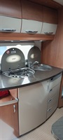 palandy, vysoká chladnička s mrazničkou, oddělená sprcha a toaleta, klimatizace Dometic, plynové topení Truma s rozfukem, mover Enduro, solární panel + dvě trakční baterie, měnič na 12V, plynový sporák, sluneční strecha ( předstan), nosič na dvě kola, výbava nádobí, židle a stolek. Rok staré pneumatiky Matador, letos vyměněny třecí kameny ve stabilizátoru oje a vyčištěny a seřízeny brzdy.