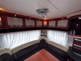 Velké rozkládací sezení ve tvaru U, velká francouzská postel, kuchyň, WC se sprchou, umyvadlo zvlášť