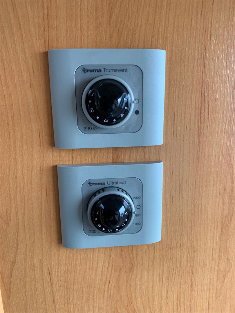 - plynové topení TRUMATIC s rozfukem teplého vzduchu po karavanu + elektrické topení TRUMA ULTRAHEAT